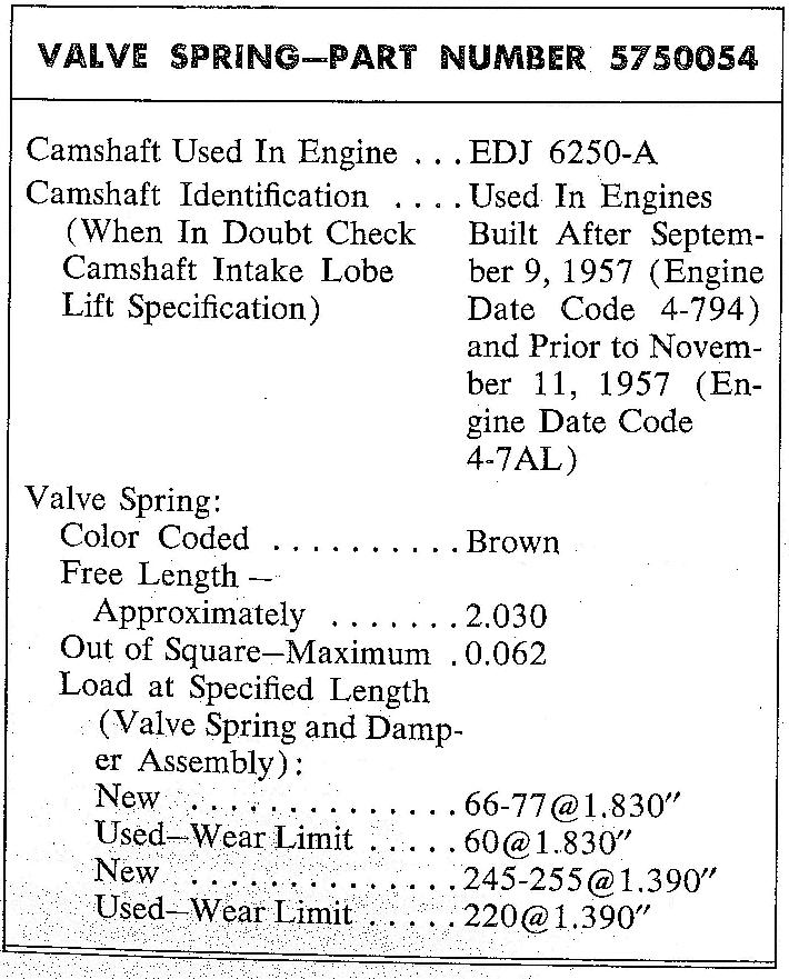 One of the earliest internal changes to the 430, other than the distributor which was re-curved around or just prior to 11-1-57, appears to be the camshaft. The 1958 service manual references the EDJ-6250-A cam as being used from 9-10-57 through 11-10-57.