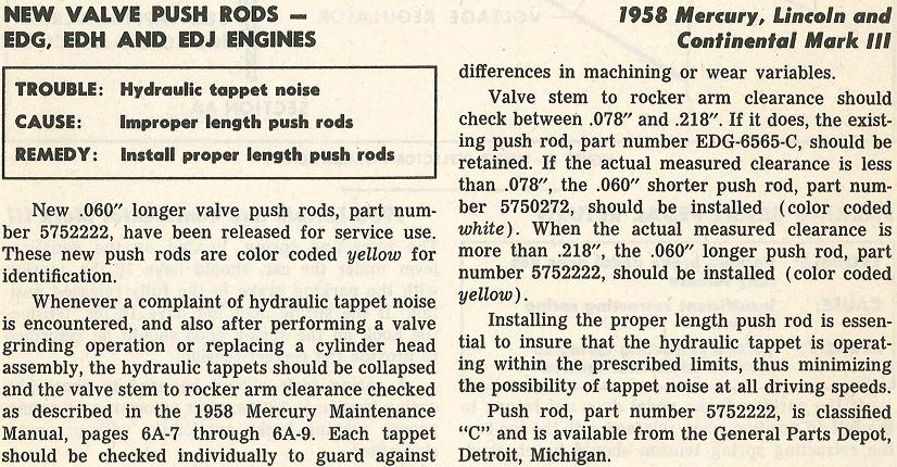 Starting 2-7-58, production implemented a reinforced rocker arm to prevent failure. Early and late styles are interchangeable.