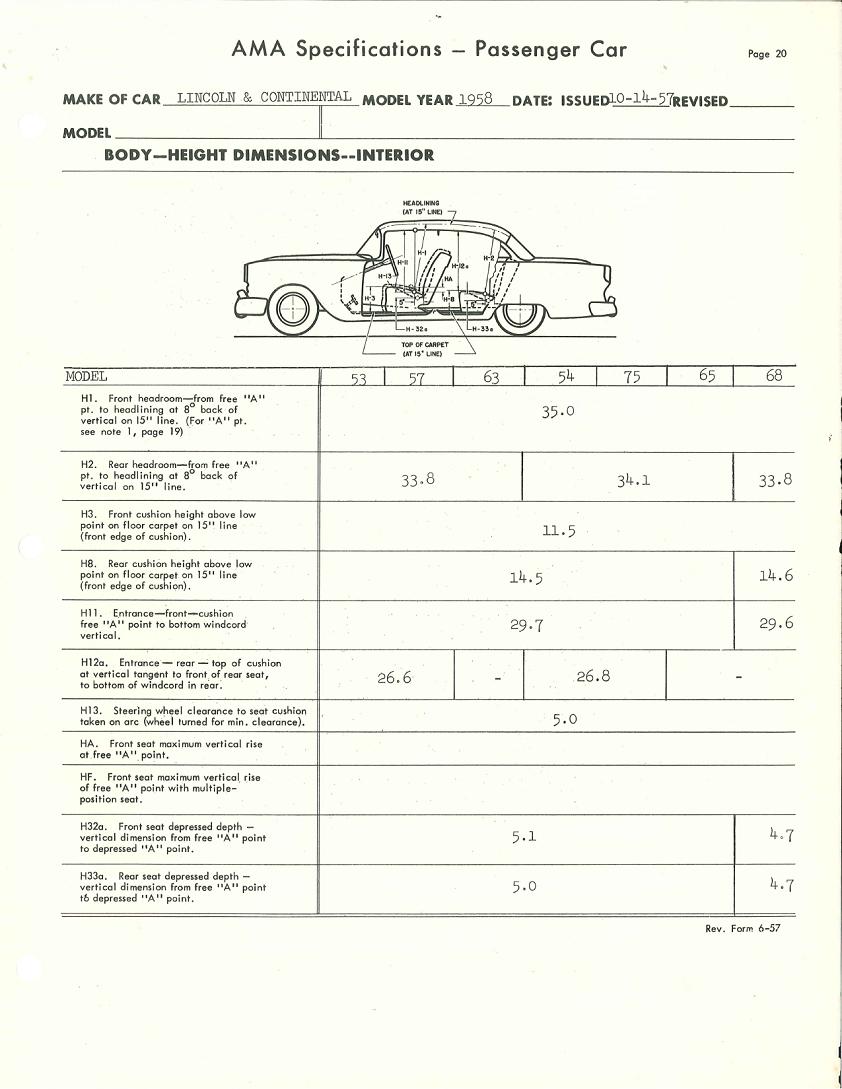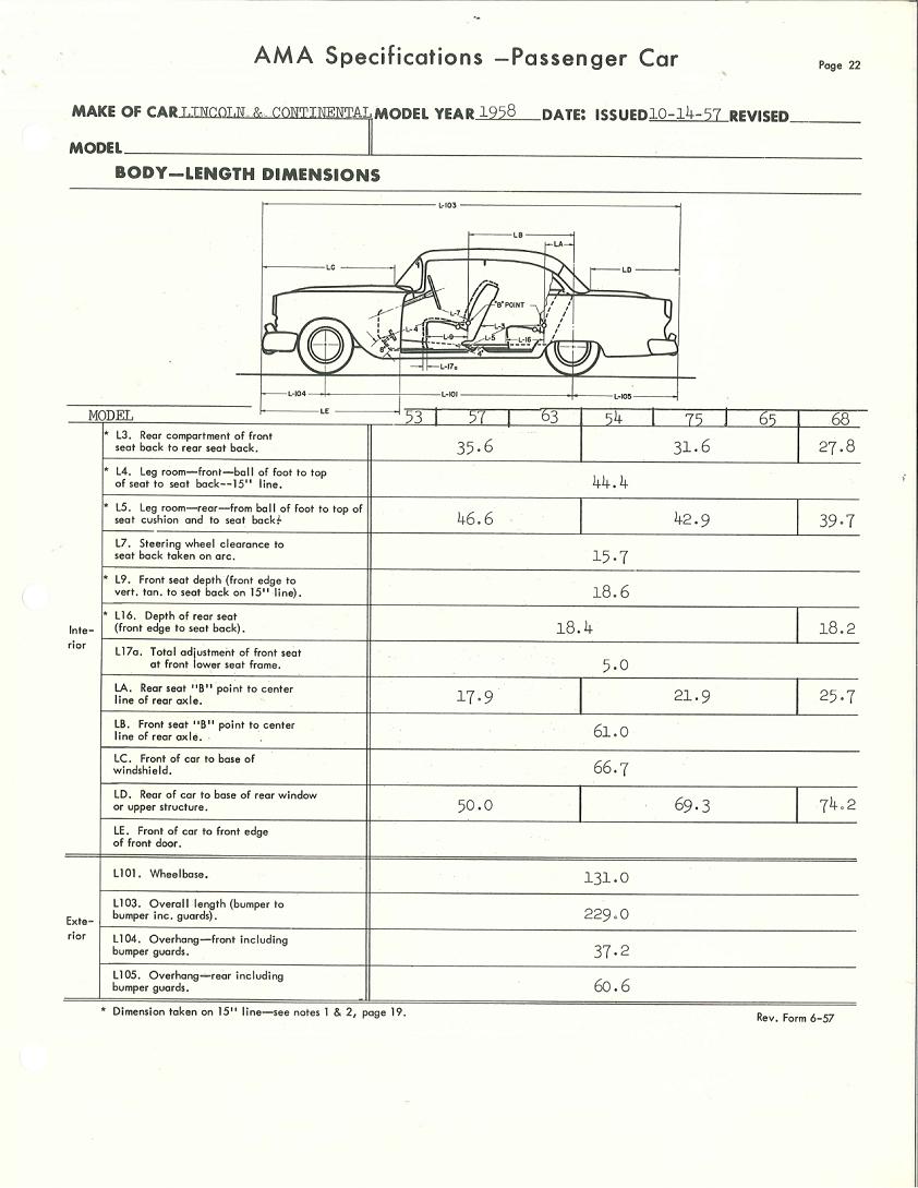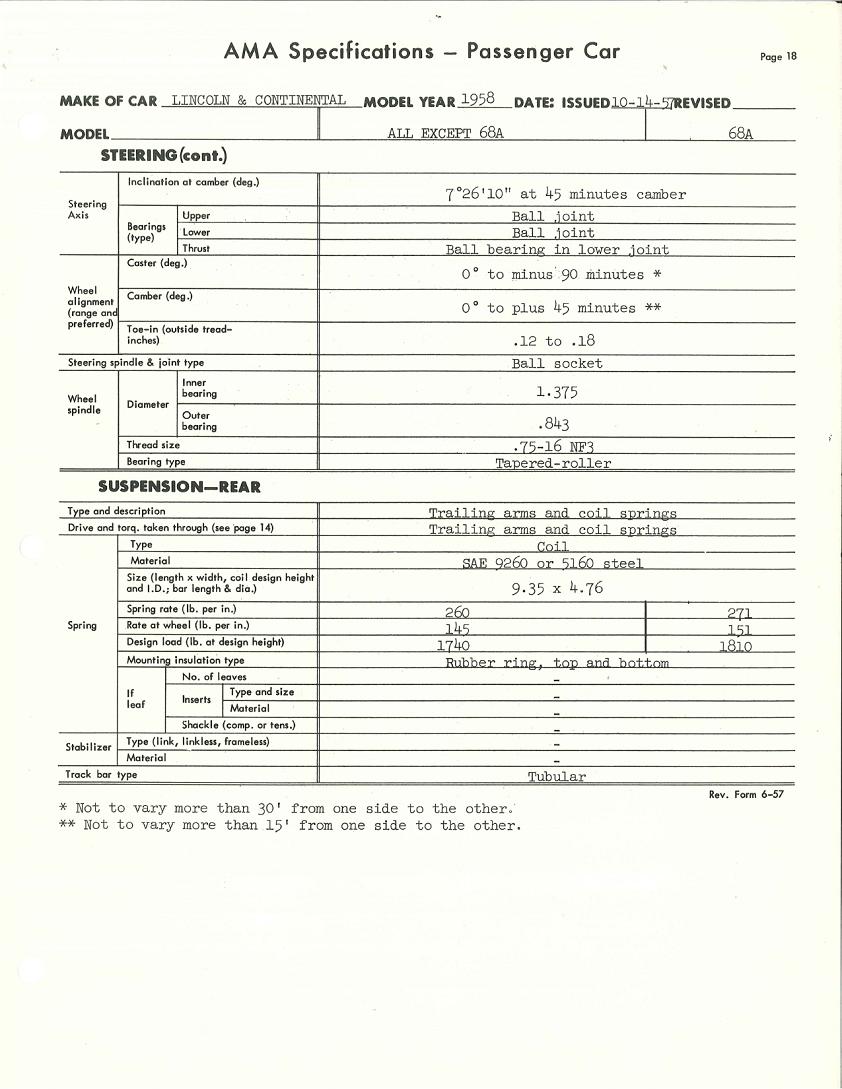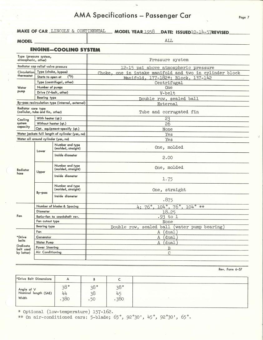 Re: 1958 Lincoln & Continental AMA Specifications (10-14-57)