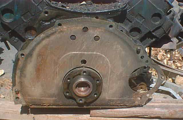 Back of 462 block with stock plate on it and 390/428 plate overlapped: