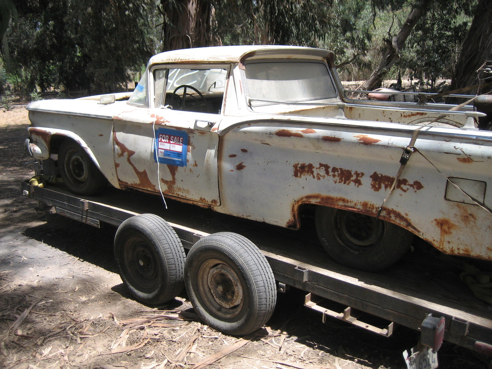 The '59 Ranchero was found in a field in Merced, CA. Was last registered in 1982. So it sat there all that time, 31 years (with hood slightly open to the elements as shown in photo). Has always been a black plate CA car. Brought to Santa Maria, CA where I bought there as shown in the photos. She is now in San Luis Obispo, CA being restored in my driveway. Not a rat rod but a rusty runner at this point is the goal. Plan on using Eastwood rust products for her. I can handle that type of restoration mostly myself, a frame-on restoration. Hire professionals where I need but keep it as cheap as I can.
