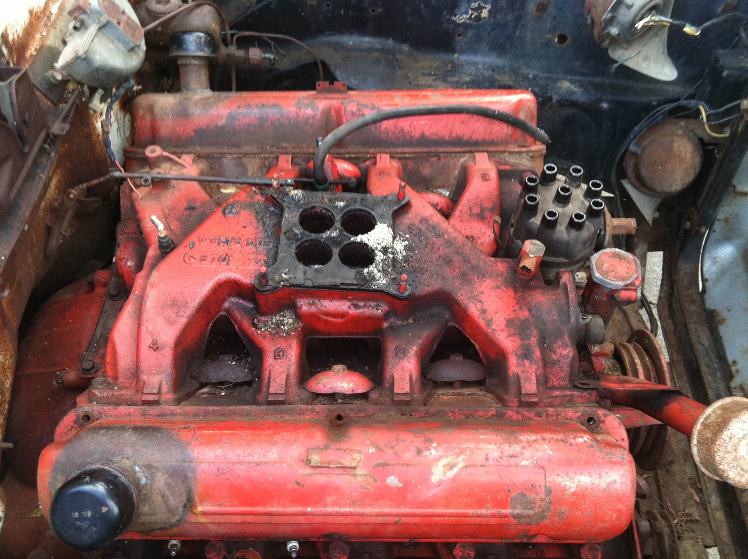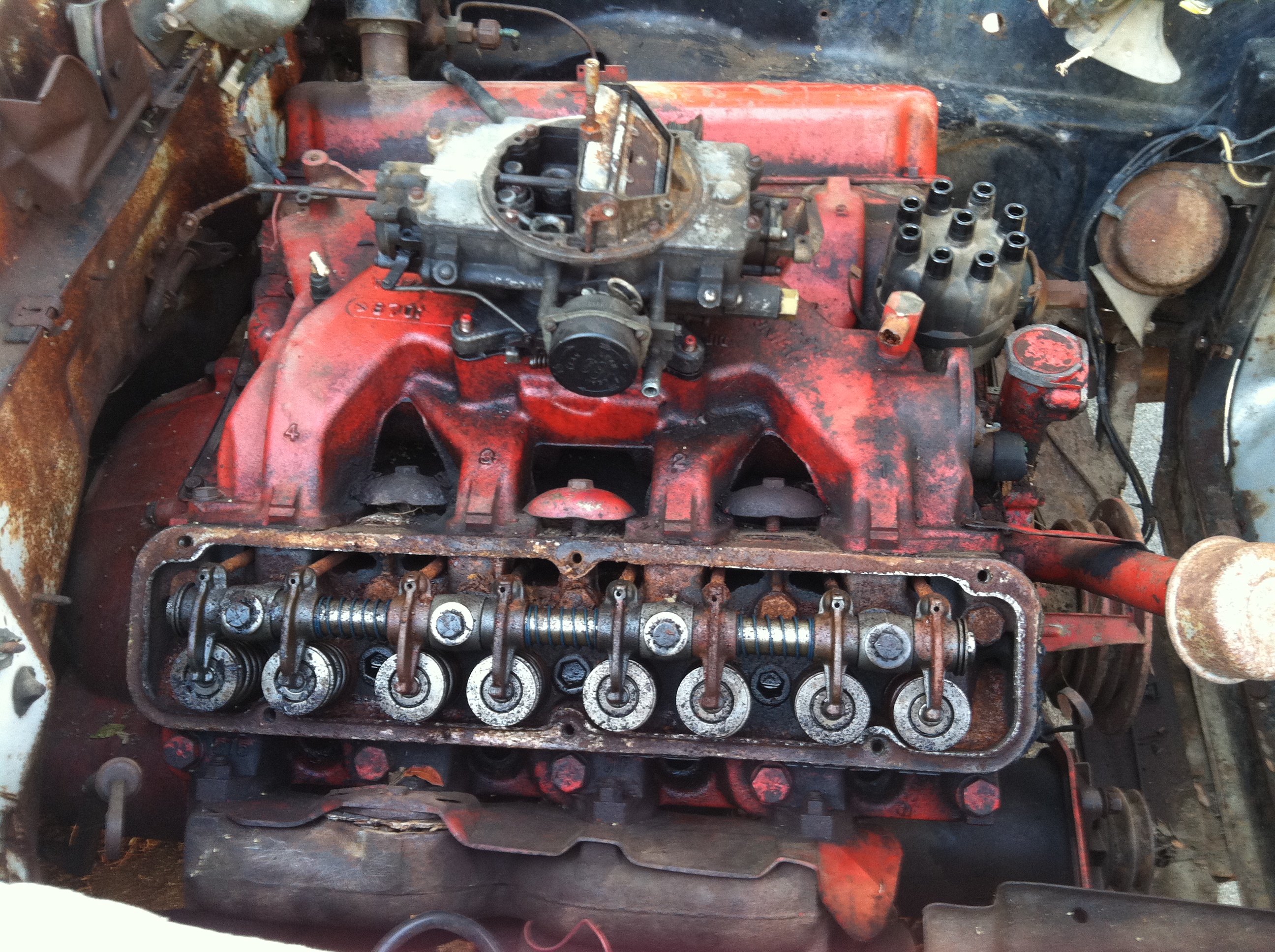 I have begun engine disassembly last weekend. Got the hoses, coil and radiator off. Still prying the carb off (gently, I swear!) after 50 years. Has a Ford 4 barrel on it. I am looking for an expert for the actual block rebuild. And tranny too.