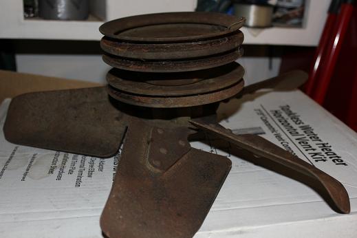 Comparison of pulleys and fan mounting bolts- click to enlarge