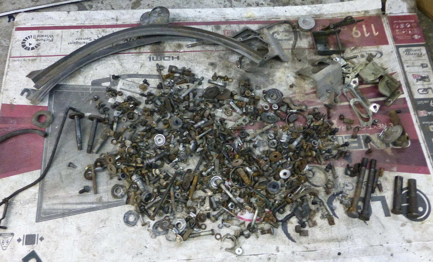 Then I have a ton of old bolts, nuts, clips, brackets and all the other parts from my car that were electro plated originally and that needs to be restored. They were sorted into what used to be silver, gold and black, and on Monday I will ship these to a company that used to plate all the bolts and such for Saab and they will make these look like new.