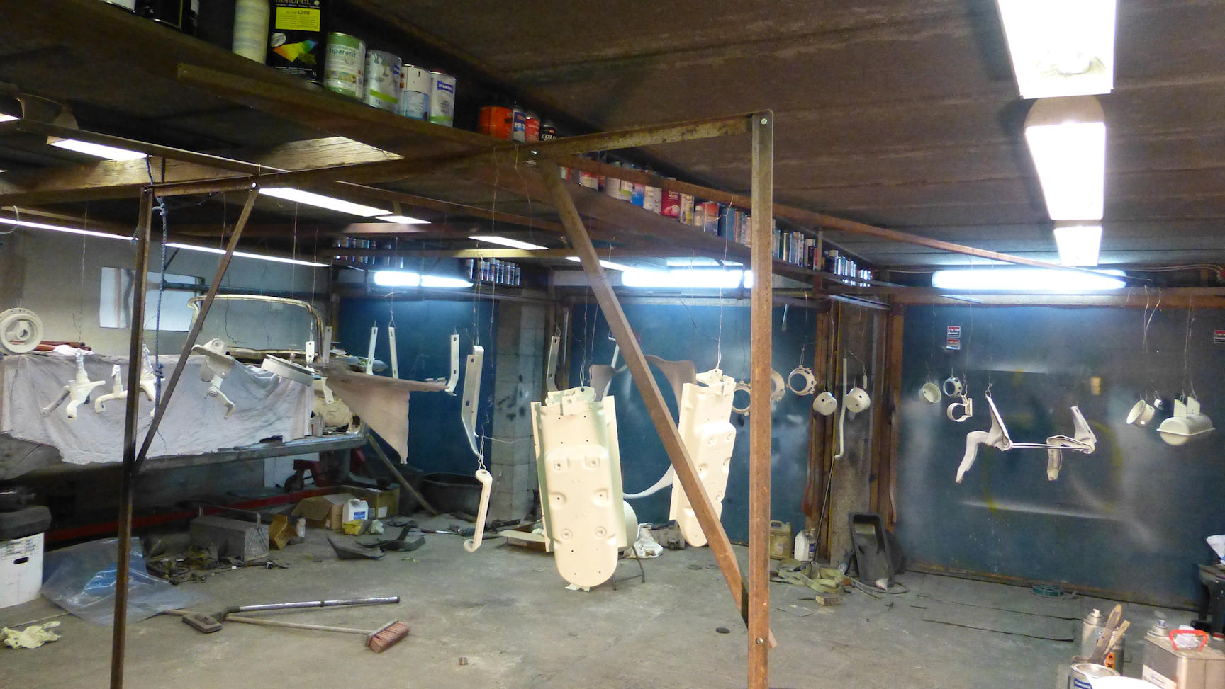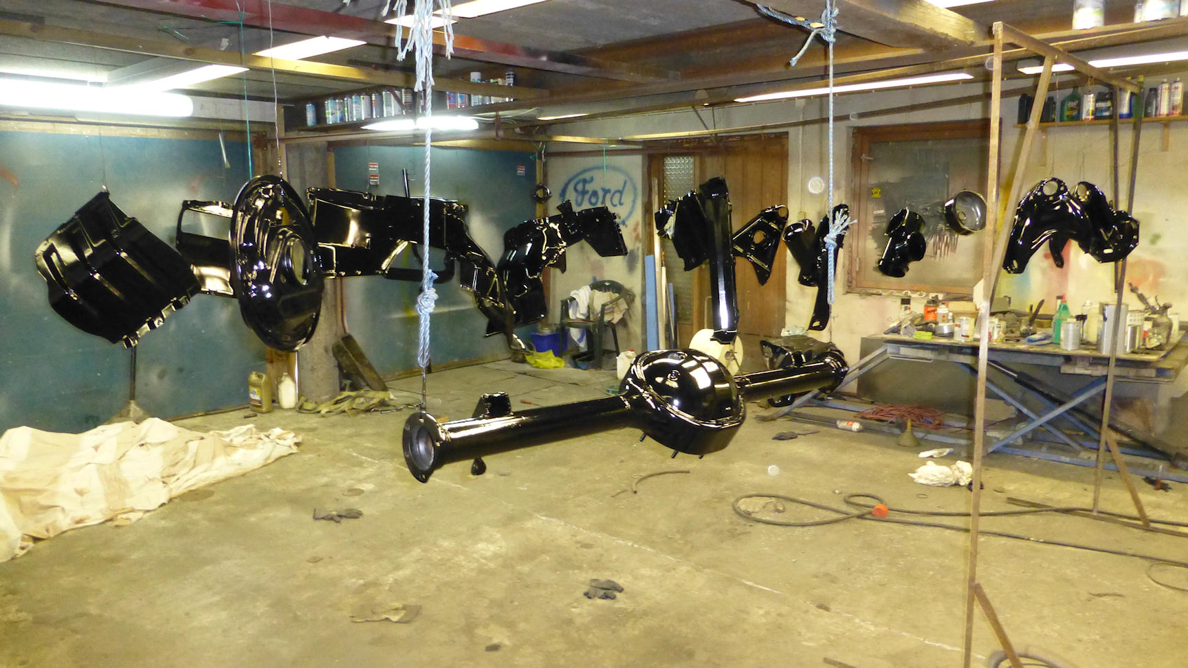 Here are most of the fresh repainted parts up on my garage loft resting and curing while I am working on other things.