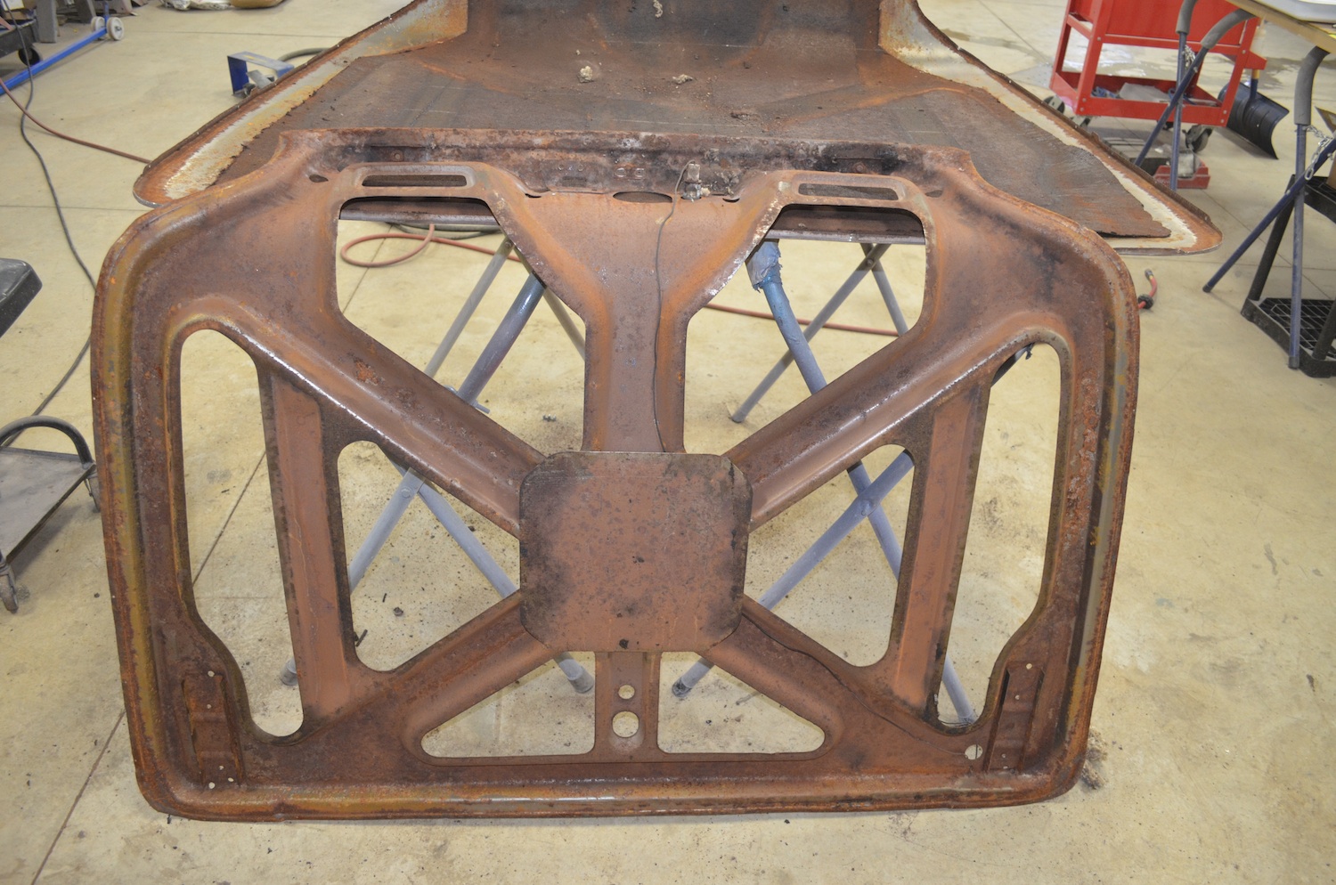 Blasted body came back today. We used a different method to do this car, and were very pleased with the results. Here is a link to what was used: http://www.rdsamerica.com/DustlessBlasting.htm.