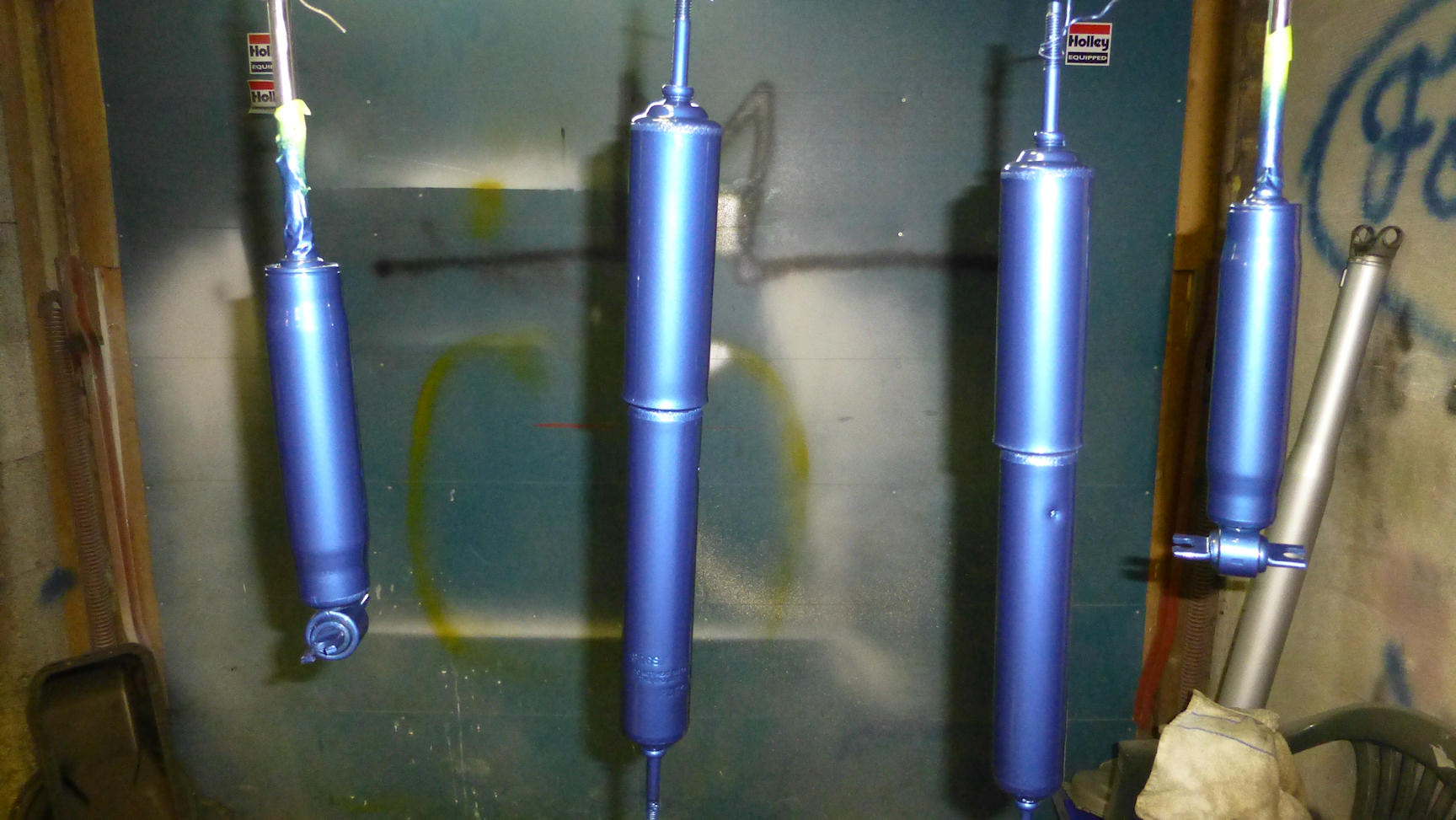 As you can see in some of the pictures above I have also installed the shocks. I bought a set of Monroe gas charged chocks for the car, but out of the box they were black, and that is boring, so I decided to give them a nicer blue metallic paint. Probably not so correct, but what don't we do for the look?