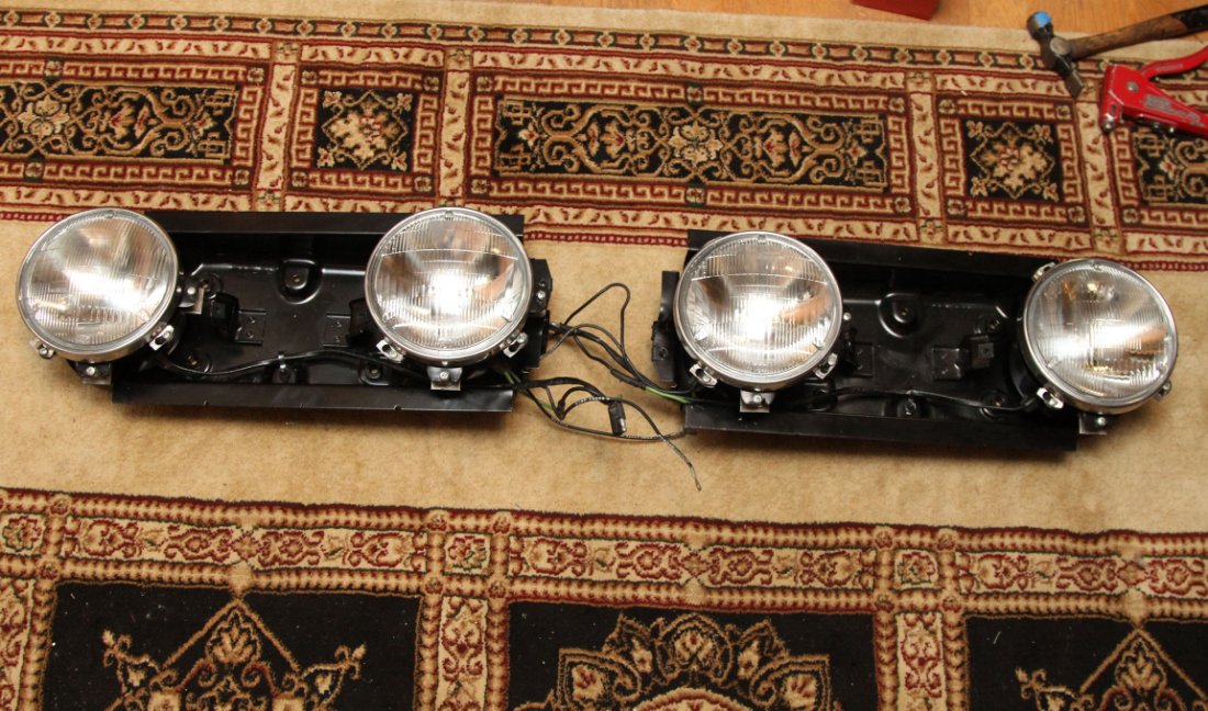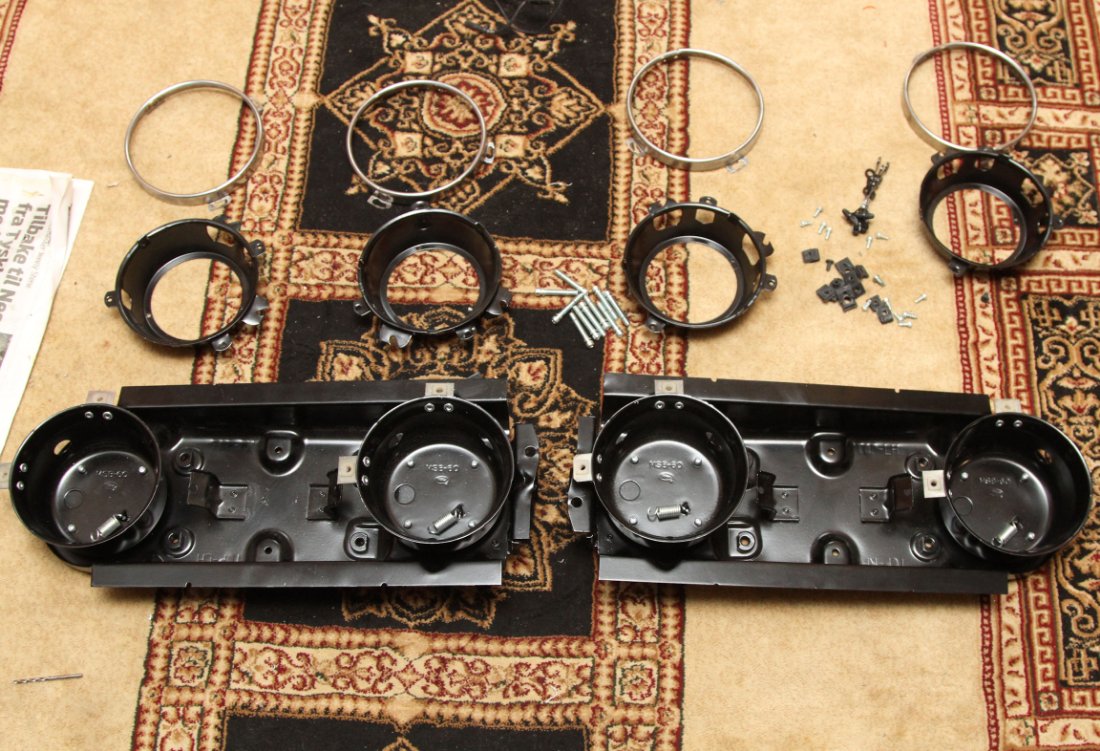 Small pieces comes together.... Headlight brackets and holders were taken totally aparts, painted, stainless were polished and screws and small parts restored before it all went back together with brand new lamps.