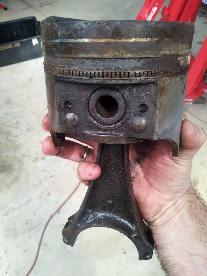 Main bearings were ok (no wear) so I could reuse them. I managed to remove the pistons very carefully without any damage to the pistons and bores. Measured everything and they were still within spec. So I removed carefully the rings and installed new ones, a did a light hone to the bores.