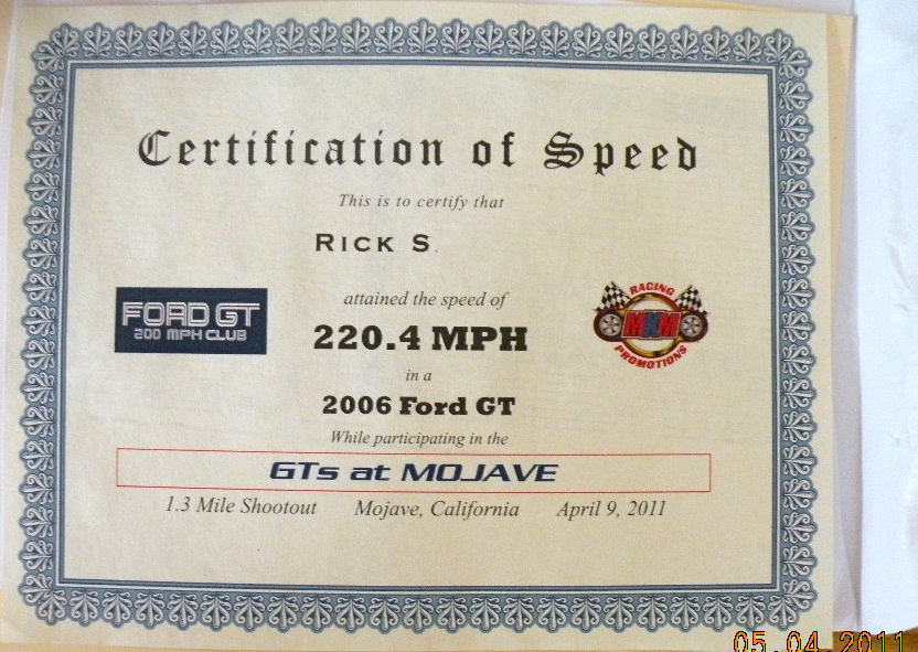 As some of you know I own two Ford GTX1's that I do speed events with. Last month was the Mojave Mile at the Mojave Air & Space port. I was hoping to put up a photo of the car on the airstrip but with only four runs that day I'm not sure anyone took any of me.