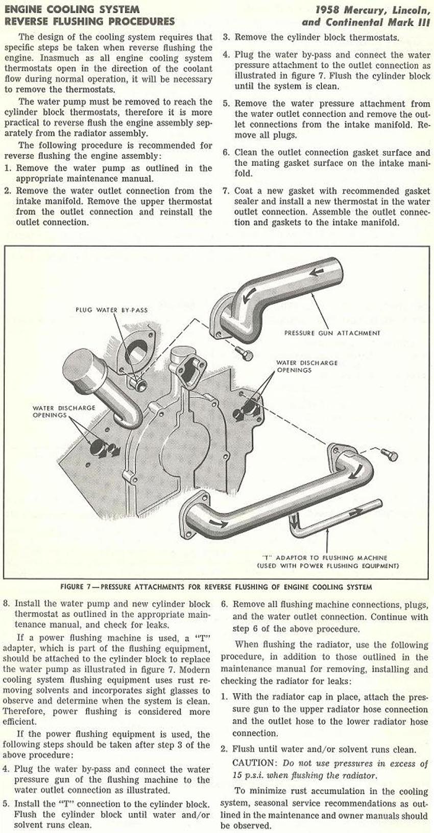 Here's some more info I uncovered on the cooling system. Pertains to flushing procedures, and comes from the 1958 Lincoln service manual.