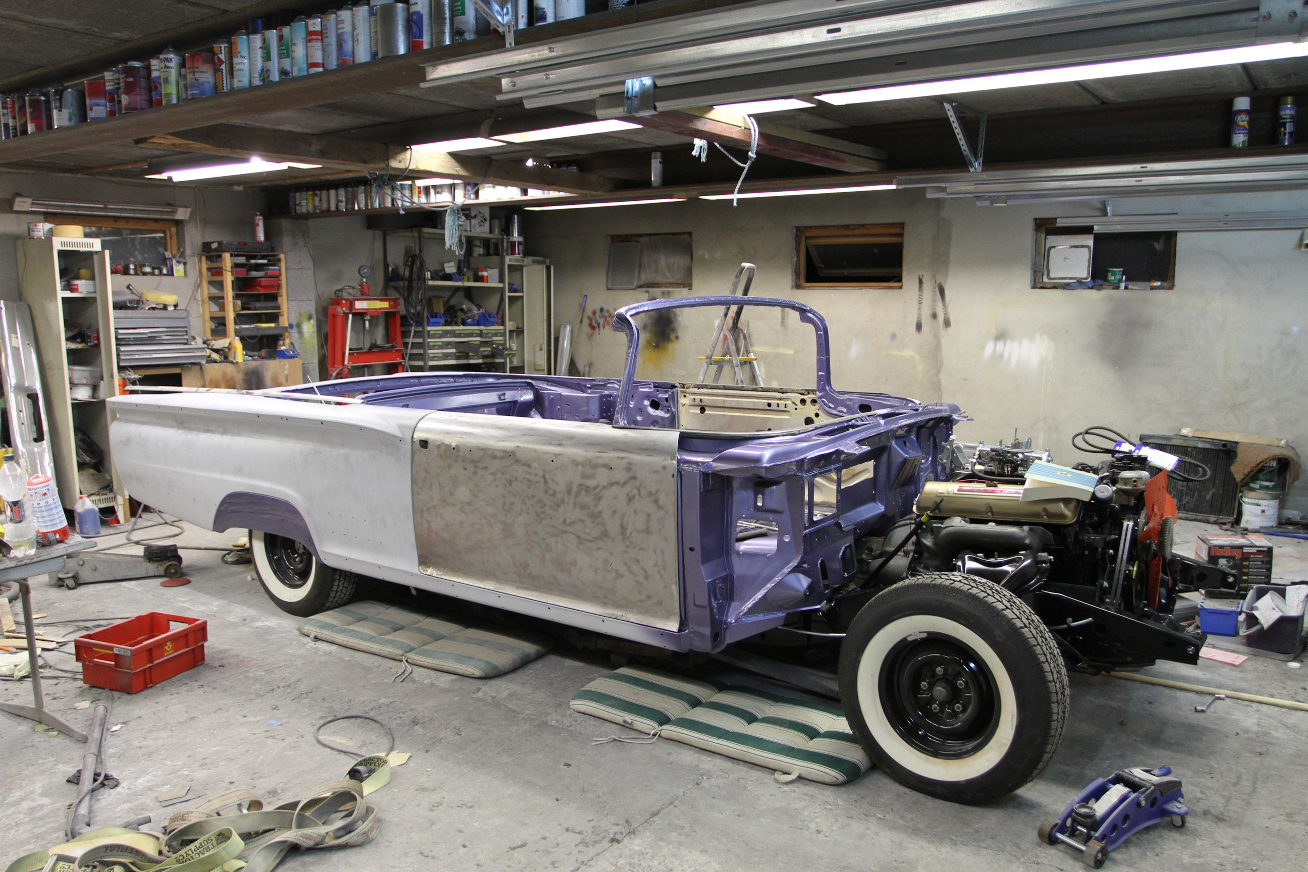 Last year I spent a lot of energy trying to decide what color to put on my car. Since then I began to doubt my own judgment on the color choice I had made and decided to go a new round with the options. I painted a few test sheets with silver, gray metallic and black metallic and put them on the side of the car and walked around it for days and weeks trying to make up my mind. Some days I was wondering if I would ever be able to make up my mind, but finally I decided to just stay with my initial decision and go for the violet metallic color I made last year. So I went to the paint store to have a quart of paint made to paint the inside of the body and firewall. Well, it turned out to be not as easy as I thought as they had deleted the mixing recipe from their files :x So I was basically back on scratch and had to start over again and make a new recipe. Yesterday I had the fender skirts test painted with the new color, and to my satisfaction, it seems like we nailed it. The color is probably a little more lilac than the one I had last year, and that just makes it a little more vibrant, especially in the sun. I love it, hope you do too :)